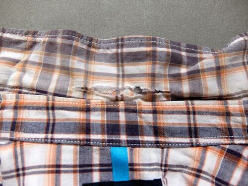 半袖シャツの補修をしました。 シャツの襟の部分、破れてる。 100ショップで買った、綿補修クロス! 初めての経験なので、説明文 読んでもさっぱりわかりません。 どっちが表か裏か さっぱりわからない。 とりあえず、 適度な大きさに切った補修クロスを…